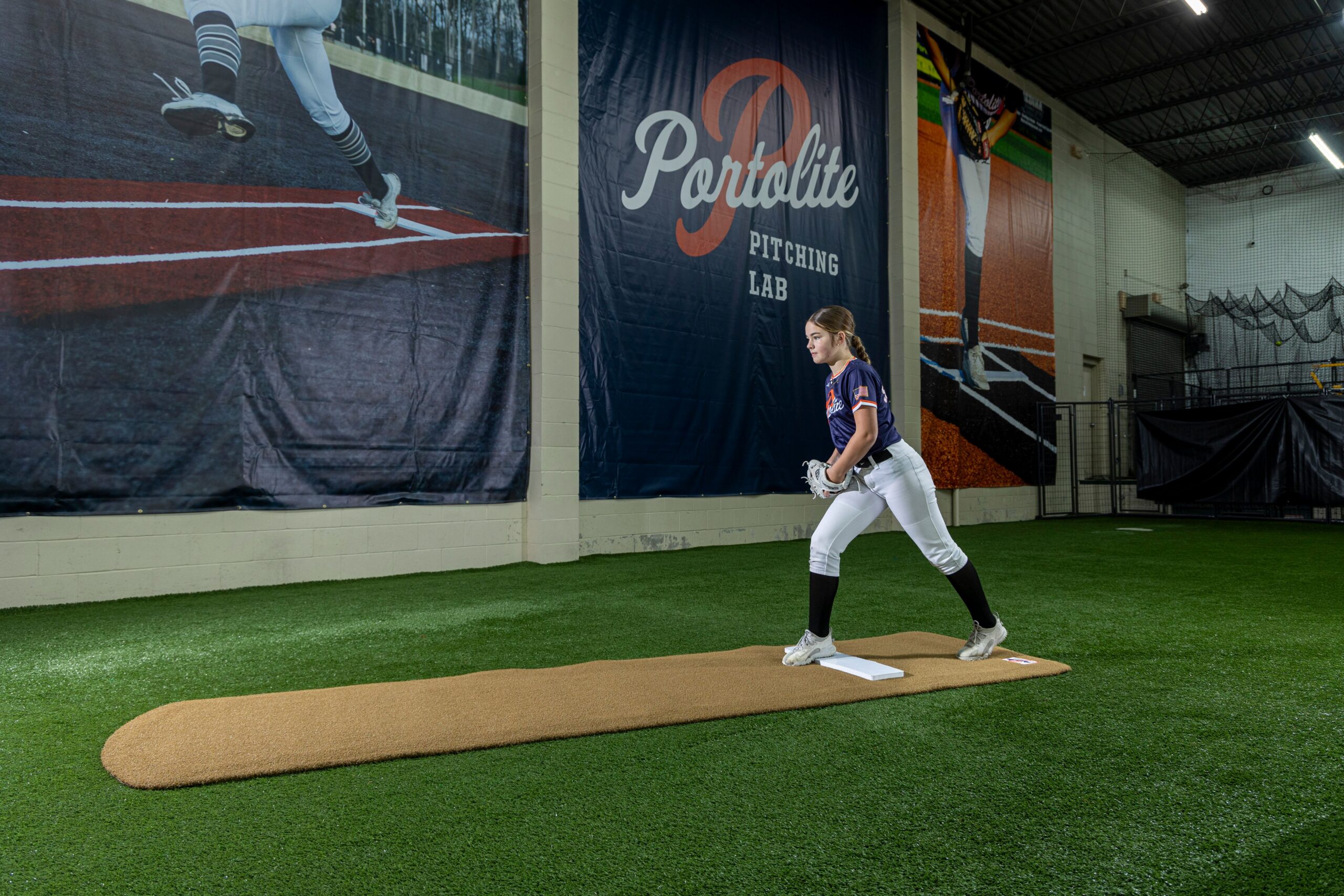 The Portolite Signature Practice Mat Without Lines is the ultimate high-mobility pitching solution for softball athletes who prioritize a clean, open surface. The softball pitching mat is built specifically for softball pitchers 12 & under, providing the stability young athletes need to train and compete with confidence. Featuring SpikeTek™ technology with 1,200 spikes, the mat stays firmly in place to prevent slipping, sliding, or bunching. The result is a consistent, secure foundation that lets pitchers focus on mechanics and performance from the first pitch to the last.