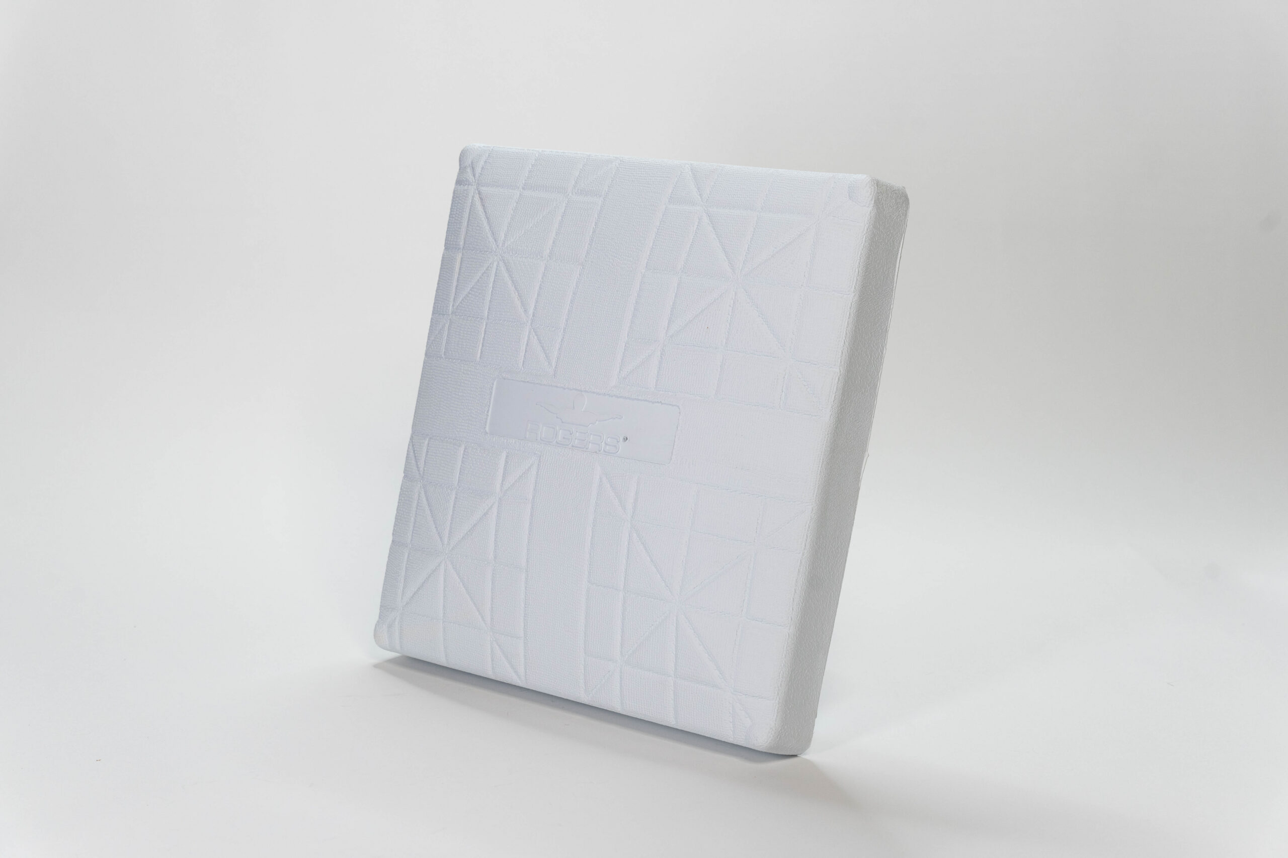 Rogers® Pro-Style Base Set with Double First Base is the ideal choice for high-level baseball and softball fields in 2026. Pebble-embossed, UV-resistant white and orange molded rubber with heavy-duty PU foam pad. Powder-coated and rust-resistant triple-reinforced welded steel anchor and stanchion pan.
